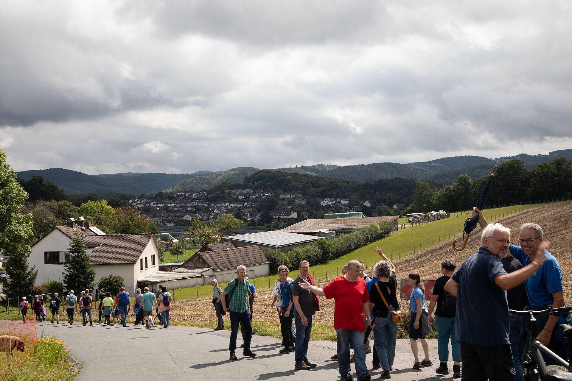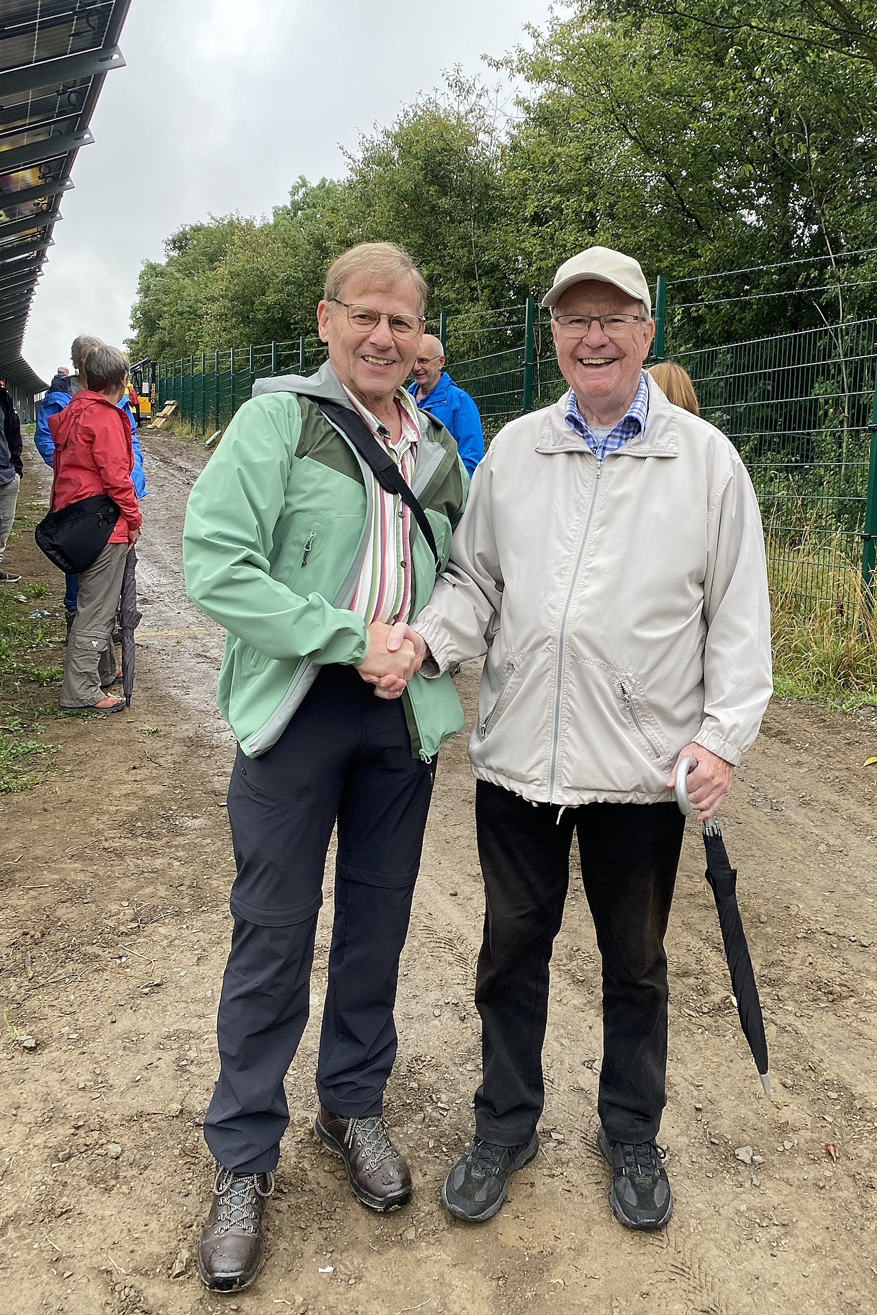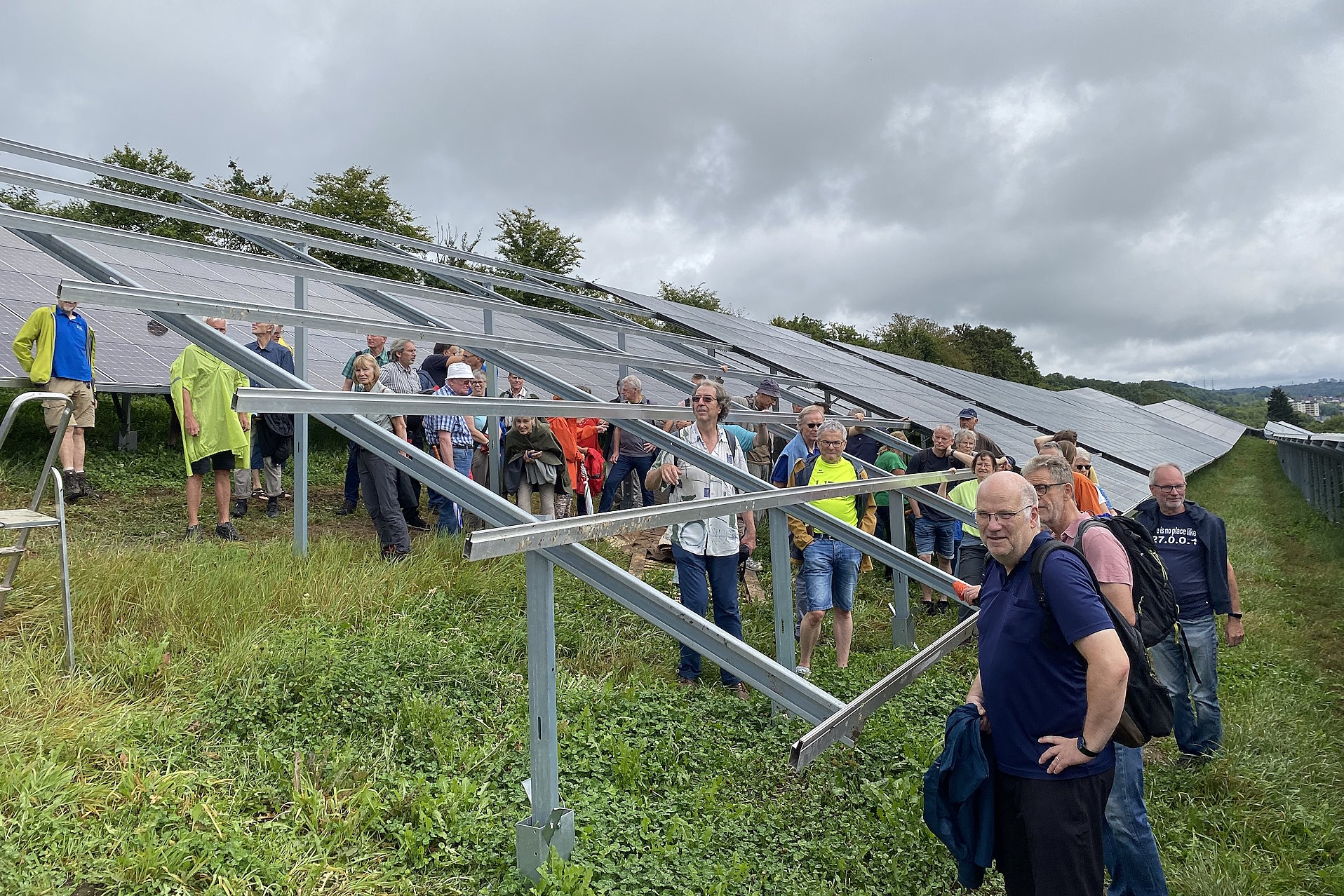 Treffpunkt war am 17. August die Photovoltaik (PV) Freiflächenanlage 1 in Letmathe. Siebzig Genoss*innen habe sich trotz regnerischem Wetter auf den Weg zur FF1 gemacht. Festes Schuhwerk war erforderlich wollte man die Anlage näher in Betracht nehmen.